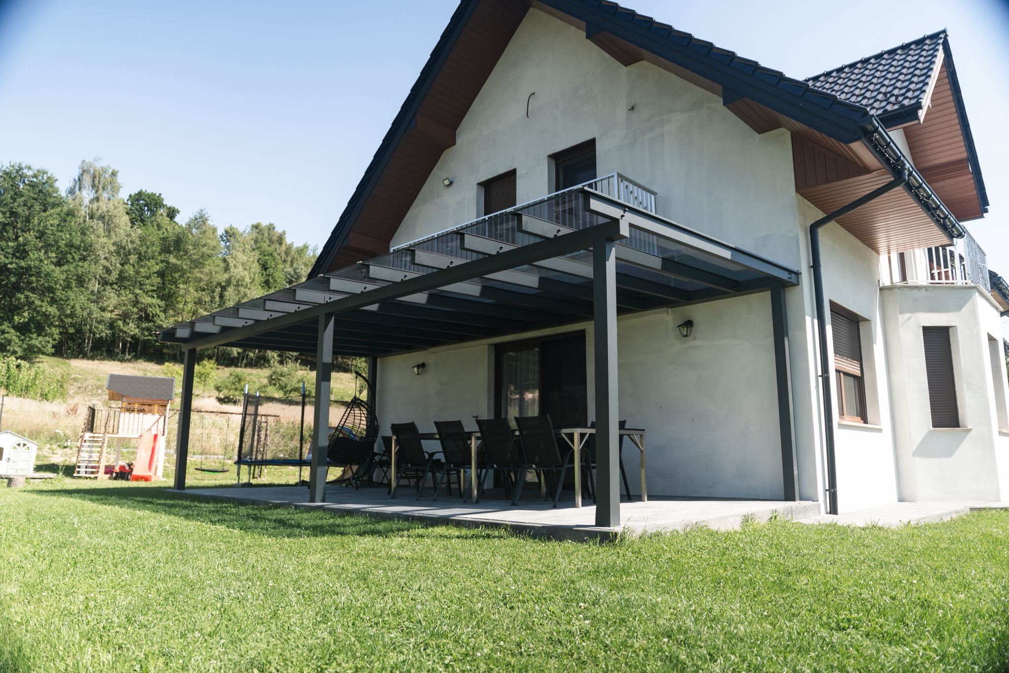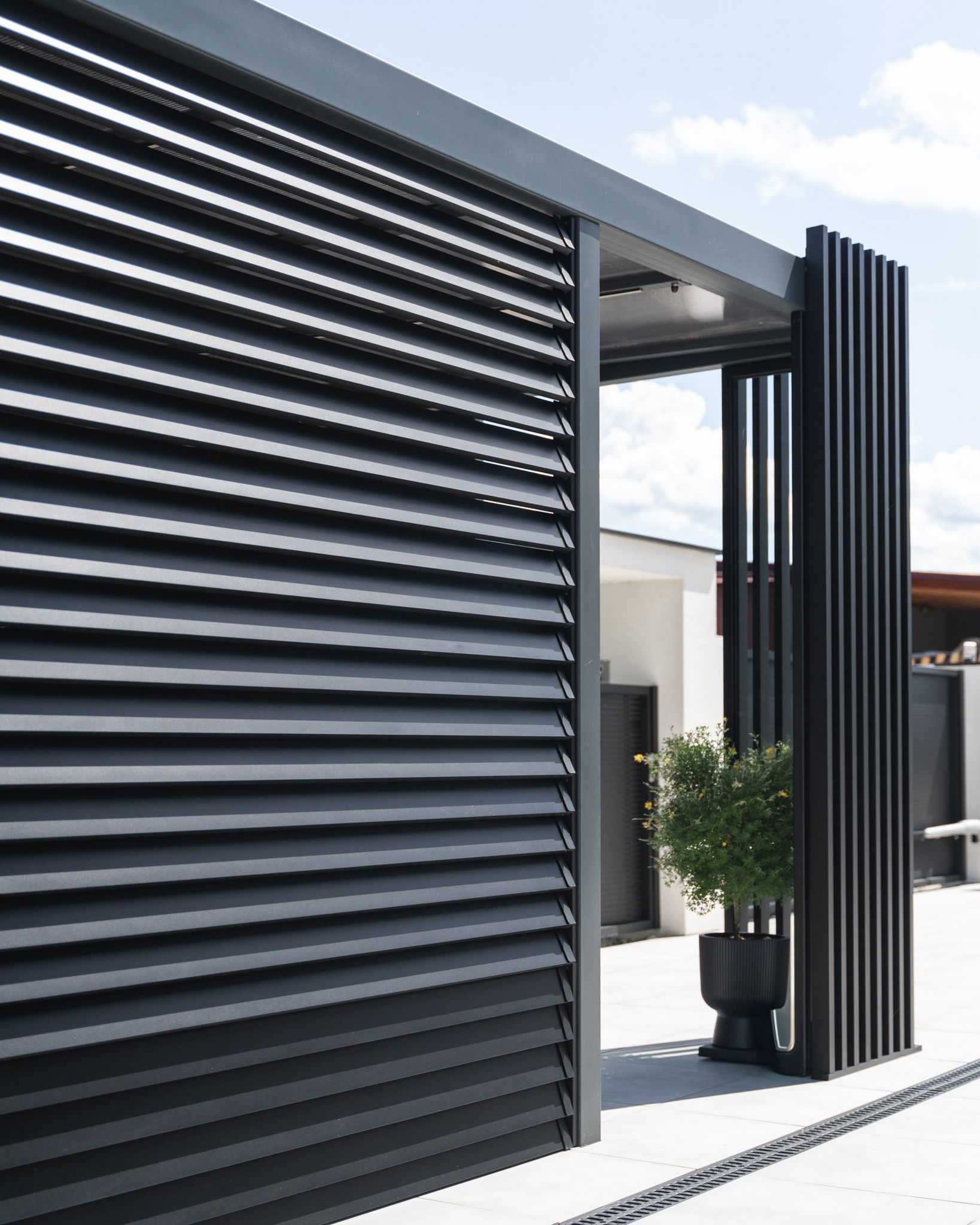 Pergole z konstrukcją aluminiową MG Wójcik to lekkość połączona z wyjątkową trwałością. Aluminium, jako materiał odporny na korozję, gwarantuje wieloletnią trwałość bez konieczności konserwacji. Zadaszenie z poliwęglanu zapewnia skuteczną ochronę przed deszczem i promieniami UV, a nowoczesny design doskonale komponuje się z nowoczesną architekturą.